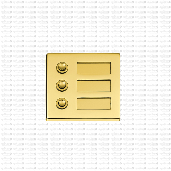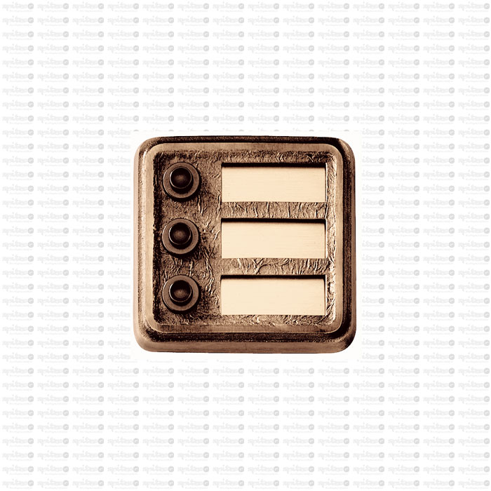 Klingelplatte 3-teilig (Oberfläche mattiert) mit auswechselbaren NamensschildernGravuren auf Anfrage Auf Anfrage auch in 4-, 5-, oder 6-telig Befestigungauf Holz oder Mauerwerk Maße: Länge/ Höhe: 105 mm/ 102 mm